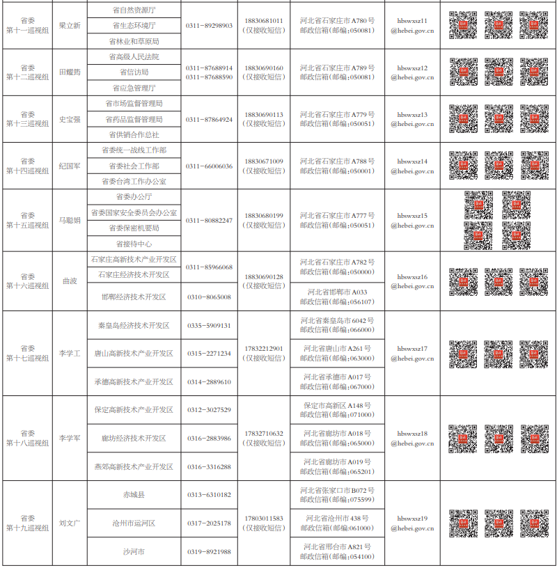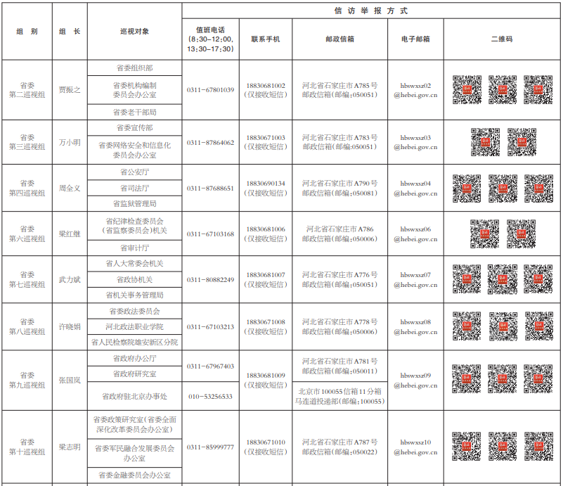 十届河北省委第十轮巡视进驻一览表